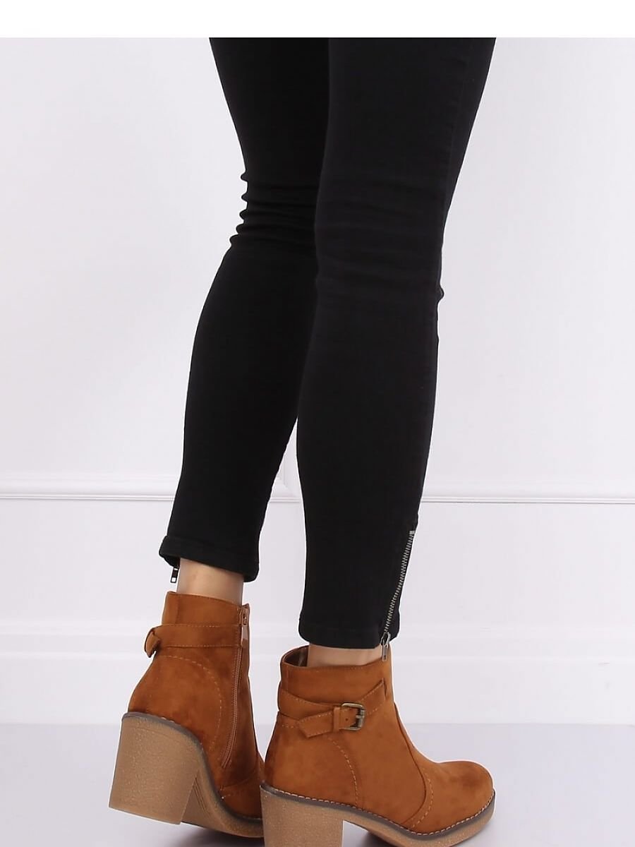 Women's boots made of ecological suede. Wide 8cm heel, which is not only stable but also very fashionable this season. A strap with a buckle on the upper is an interesting accent that highlights the unique character of the shoes. The comfort of putting them on is ensured by a zipper on the inside. Perfect for autumn! Warming ? foam lining.
