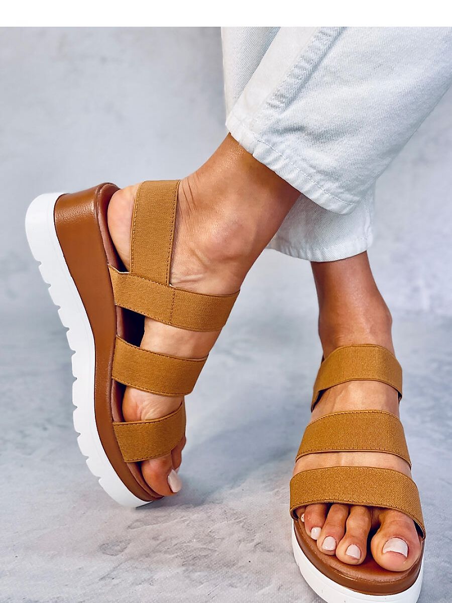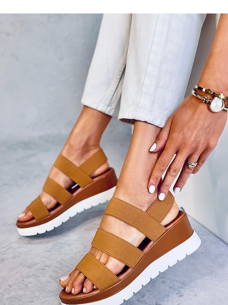 Lightweight women's sandals on a 6 cm high anchor. Elastic straps on the midfoot ensure a perfect fit to the leg, and the fashionable platform - 3 cm guarantees stability. You will definitely want to take them on every holiday walk! Outer material ? elastic fabric/rubber.