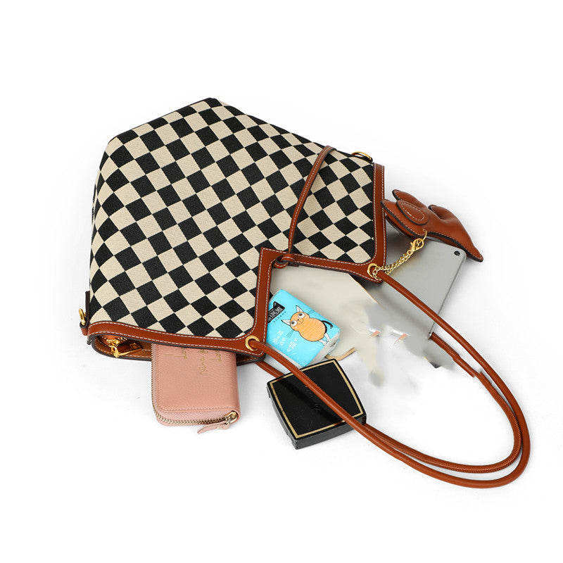 Specification:Texture: FabricPattern: PlaidStyle: European and americanFashion shape: Shopping bagColor classification: Checkerboard colorInternal structure: ZipperHidden pocket mobile phone pocketWith or without interlayer: NoBackpack...