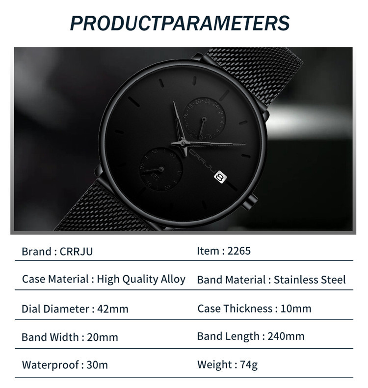 Product information:Model: Kajun 2265Color: black needle, red needle, rose needle, blue needleDial diameter: 4.2cmThickness: 1.0cmStrap length: 24cmStrap width: 2.0cmFeatures:24 hours/calendar functionPremium alloy...
