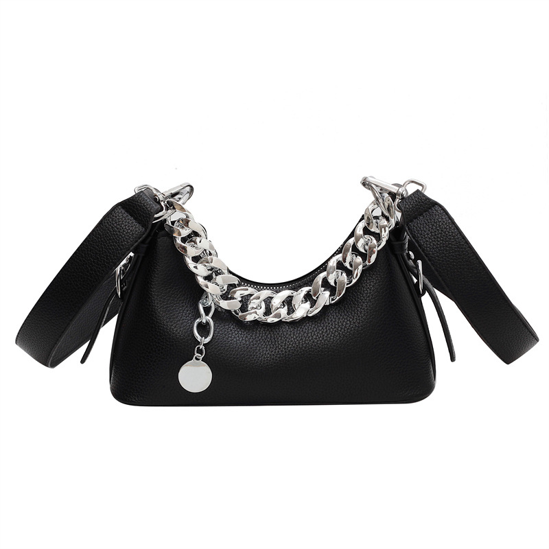 Niche Fashion Wide Shoulder Strap Messenger One Shoulder Underarm Chain Baguette Women's Bag