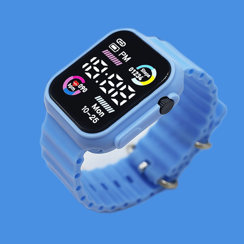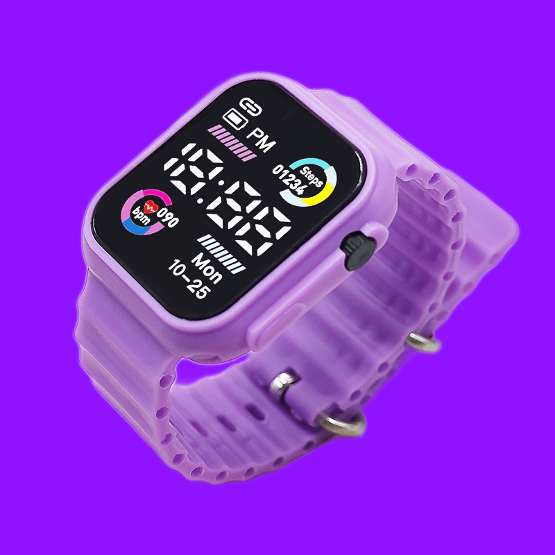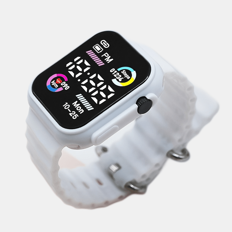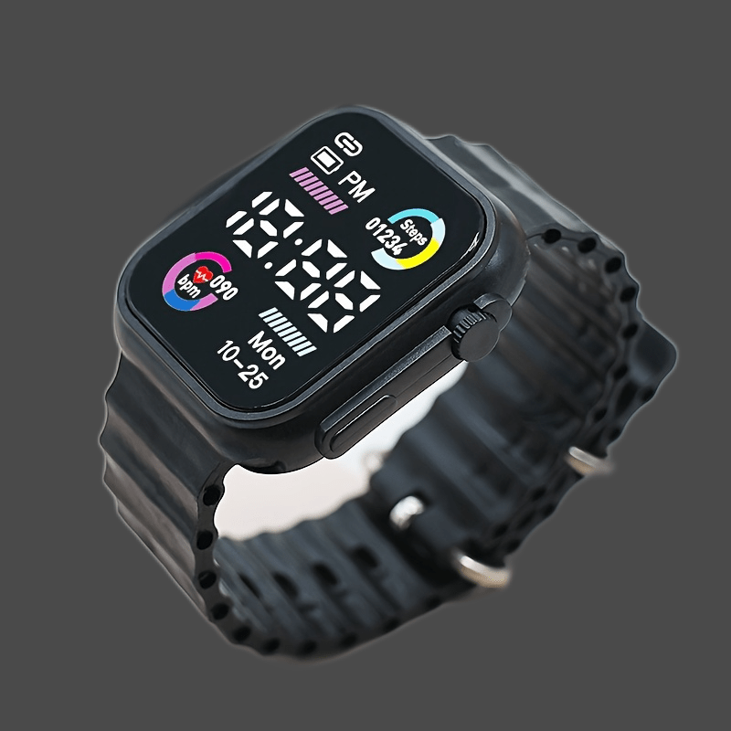 Sleek Digital Sports Watch For Teens & Adults - Square, Multiple Colors Available, Silicone Band, Non-Waterproof FS