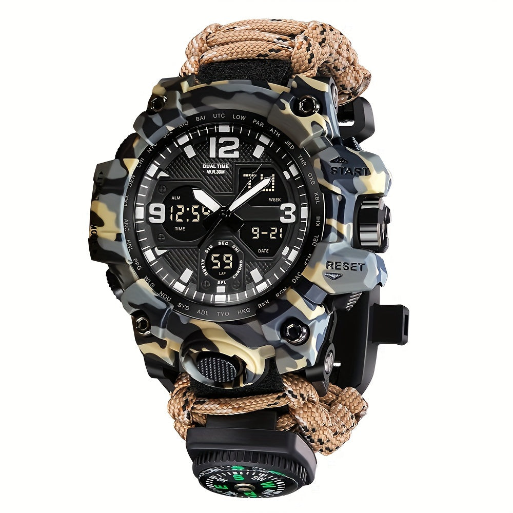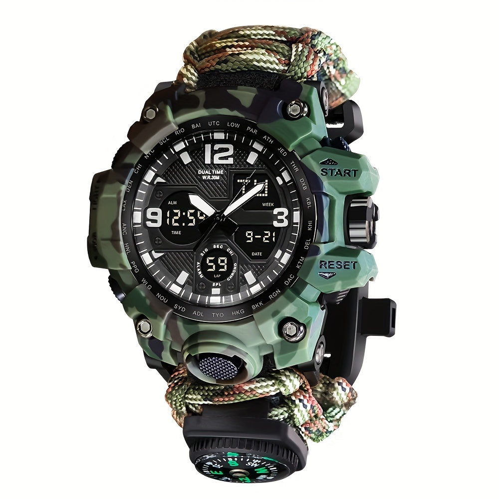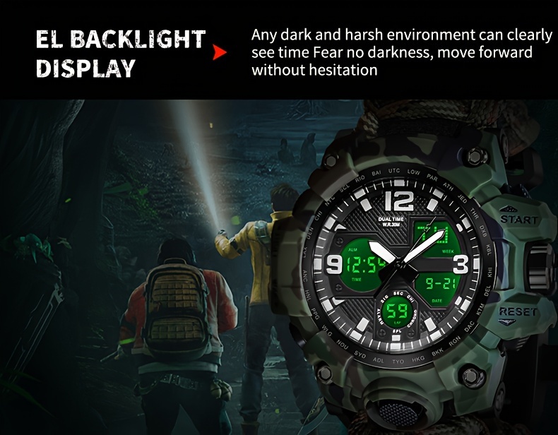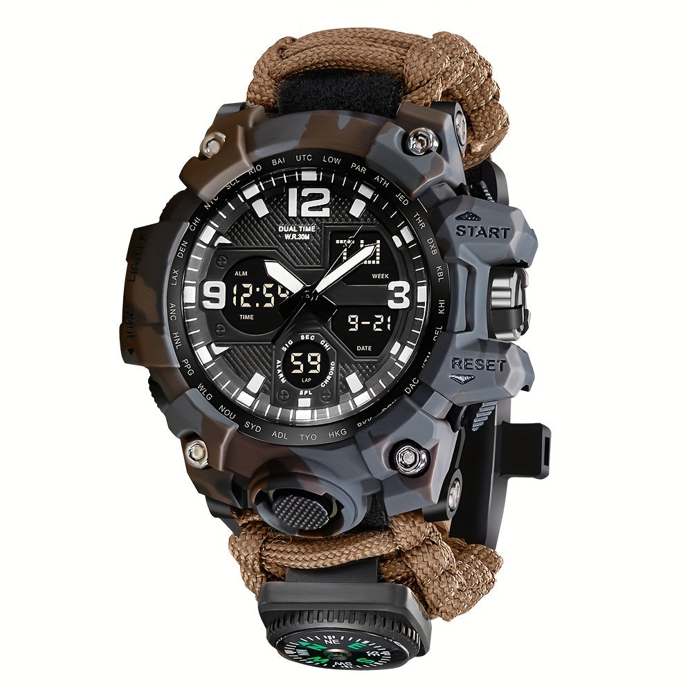 Sporty Watch Night Glow Dual Display Electronic Watch for Men - Water Resistant, 24 Hour Format, Tachymeter, and No Wireless Connection FS