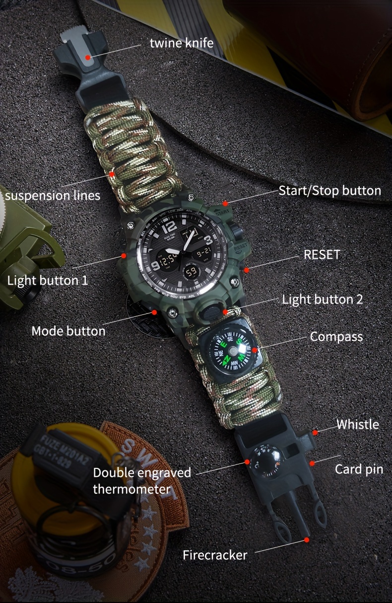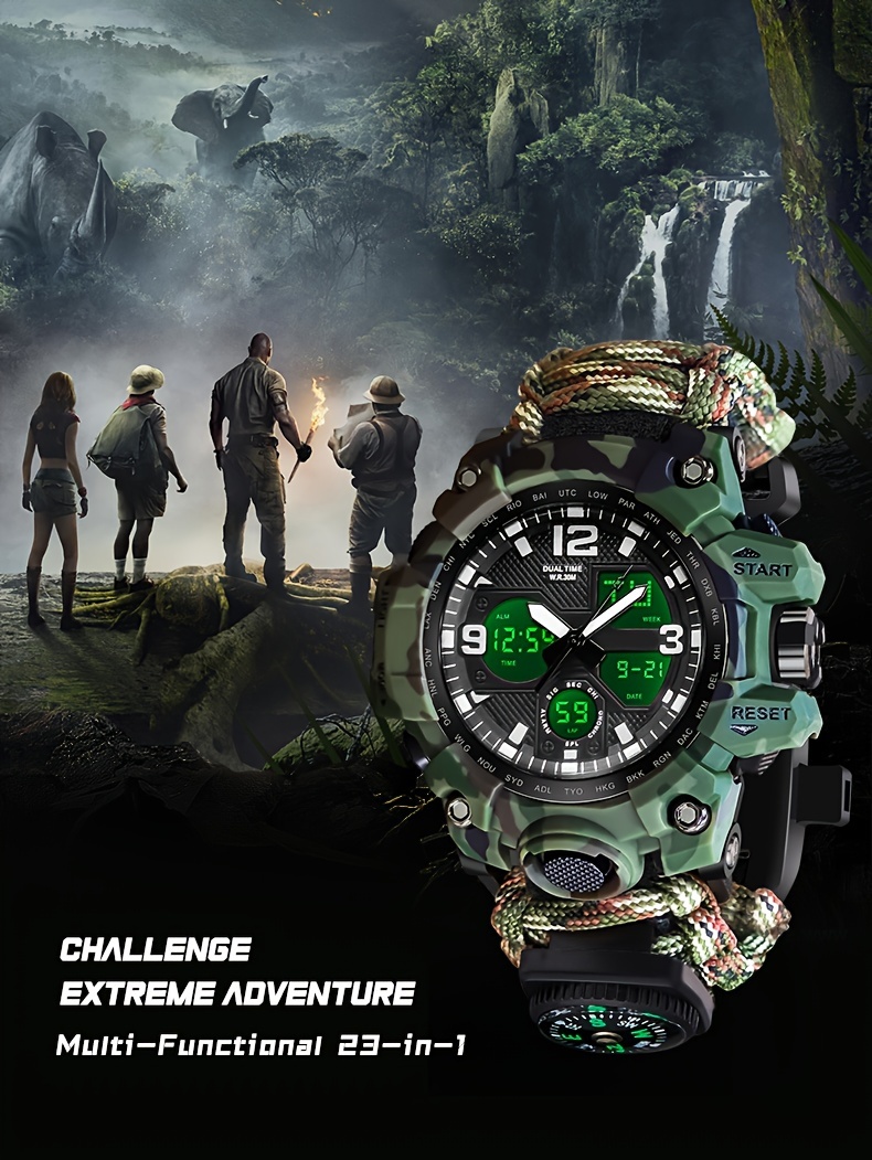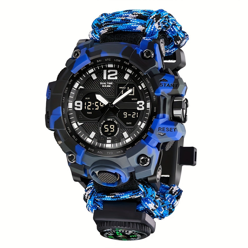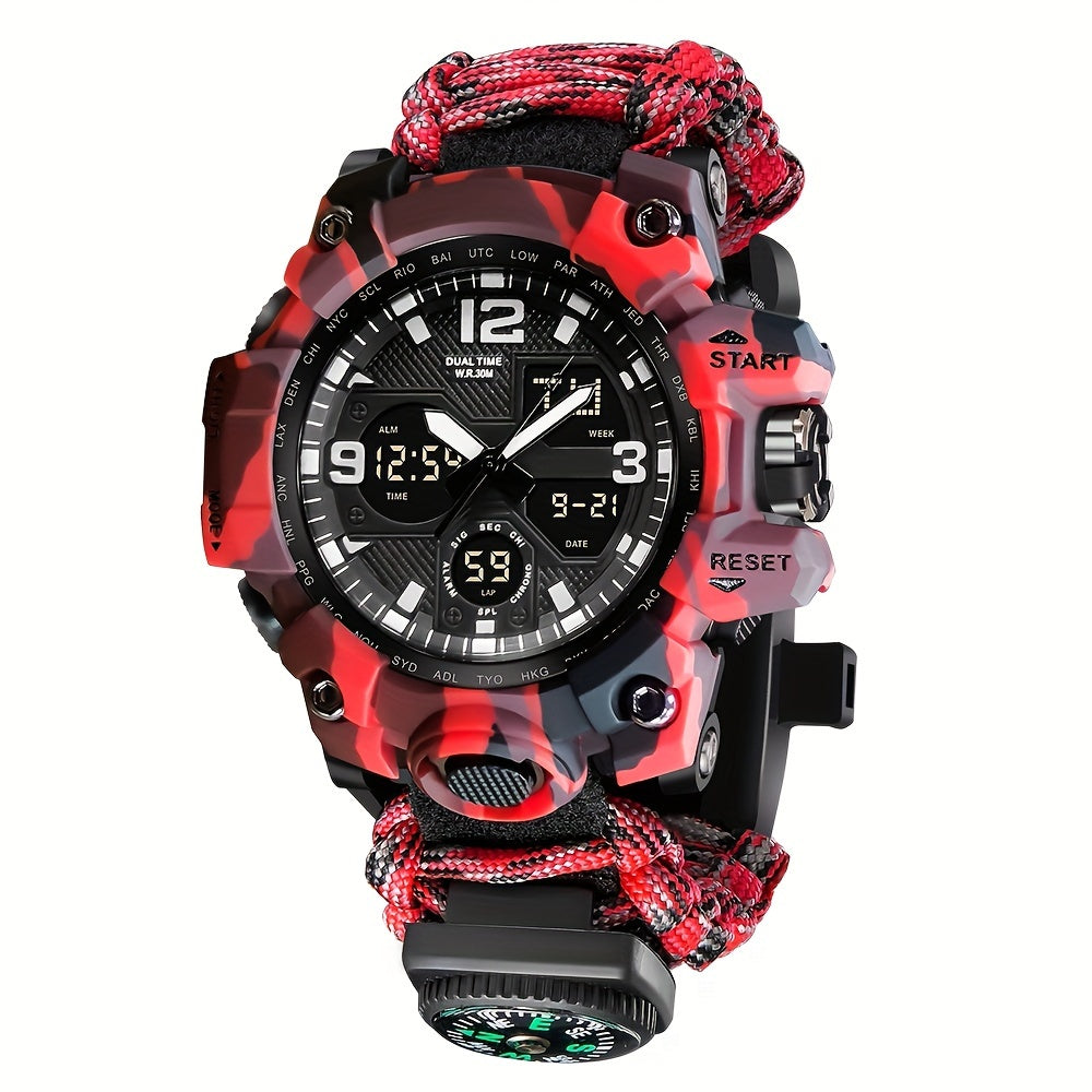Sporty Watch Night Glow Dual Display Electronic Watch for Men - Water Resistant, 24 Hour Format, Tachymeter, and No Wireless Connection FS