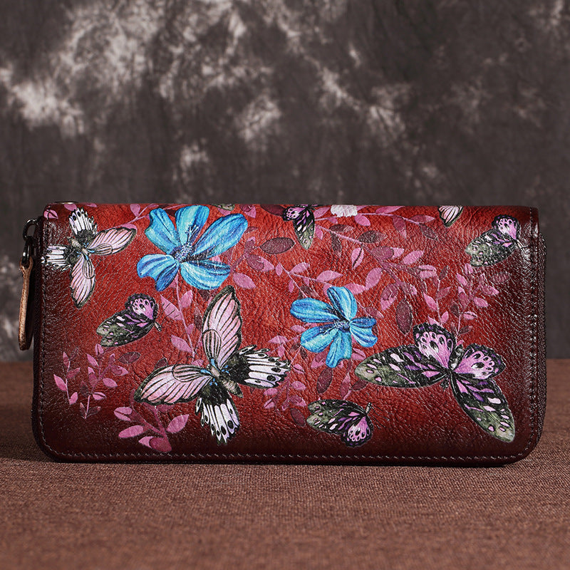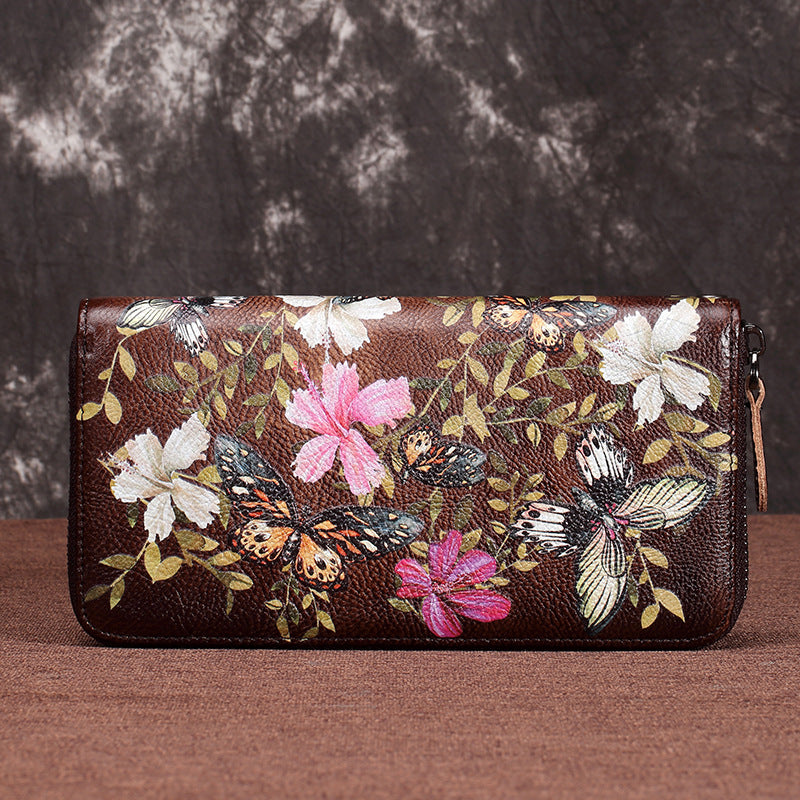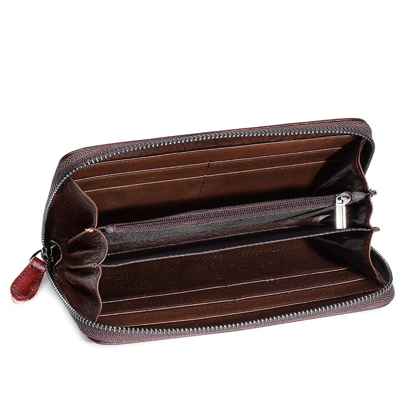 Tree Paste Leather Zipper Bag Retro First Layer Cowhide Mobile Phone