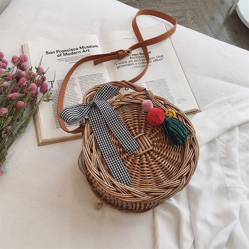Versatile Crossbody One Shoulder Rattan Basket Bag Tote