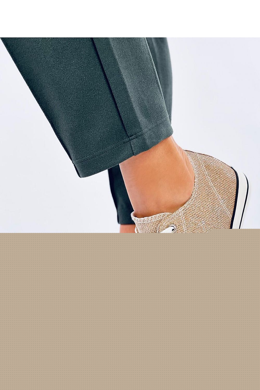 Women's sneakers on a 5 cm high anchor. This unique model will steal your hearts with its iridescent glitter finish.... They have a classic cut with a higher upper, which emphasizes their style. They are made of fabric. Insole - fabric.