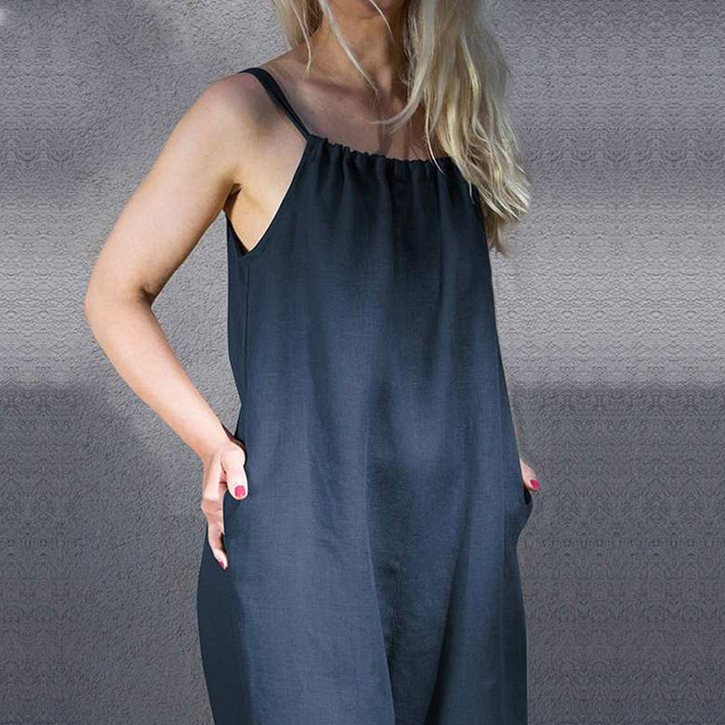 Women Fashion Sling Backless Lace-Up Loose Jumpsuits
