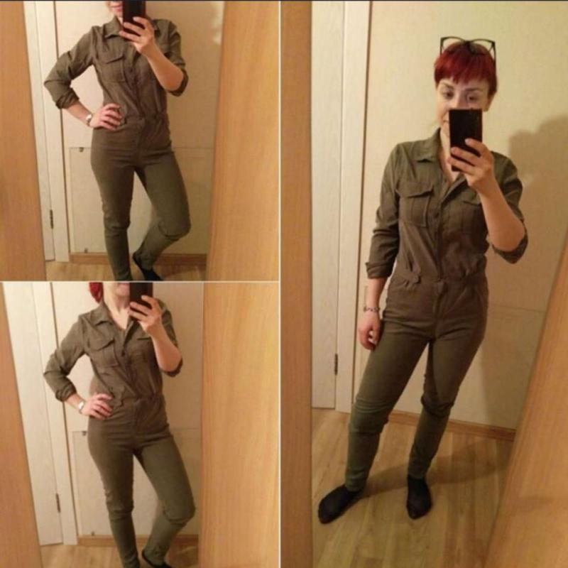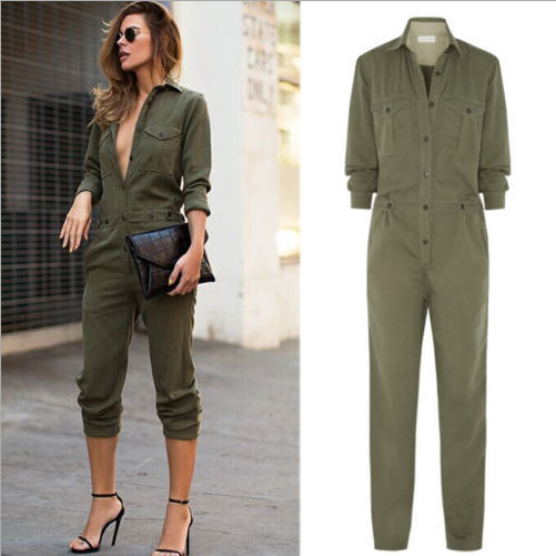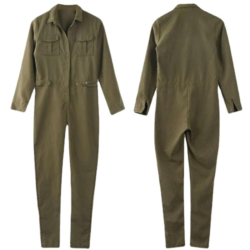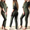 Women Lapel Long Sleeve Trousers Loose Jumpsuit