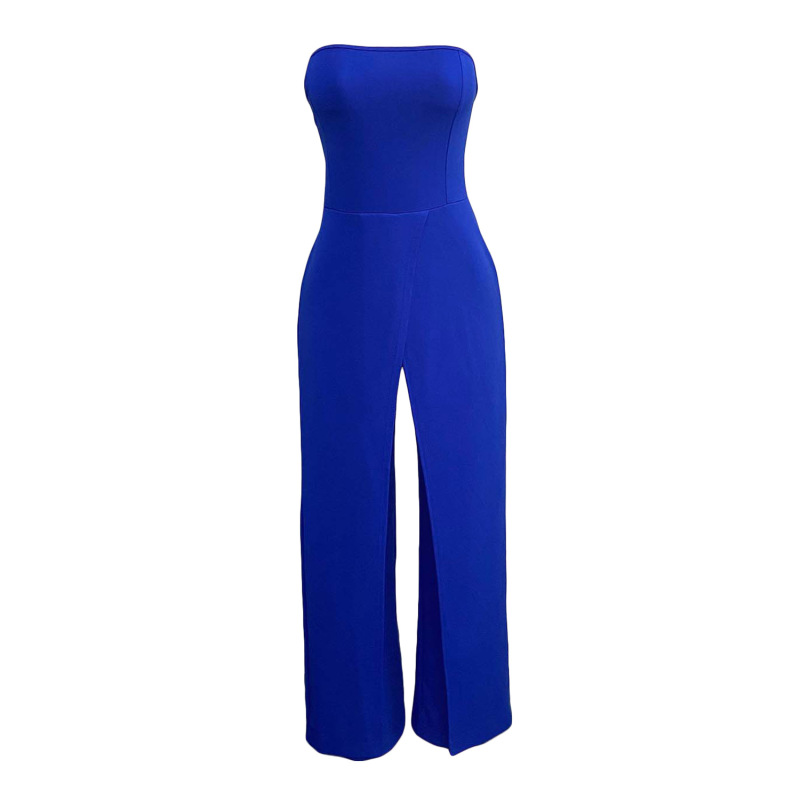 Women Solid Color Tube Top Slit Fashion Casual Wide Leg Jumpsuit